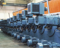 A later development from Babcock Wire Equipment for the drawing of EC aluminium, aluminium alloys and specifically Lamitref MS 200 alloy. The DC drives to all pullblocks and lubricant feed are microprocessor controlled permitting the elongation to be varied between 20% and 40% according to the menu selected.